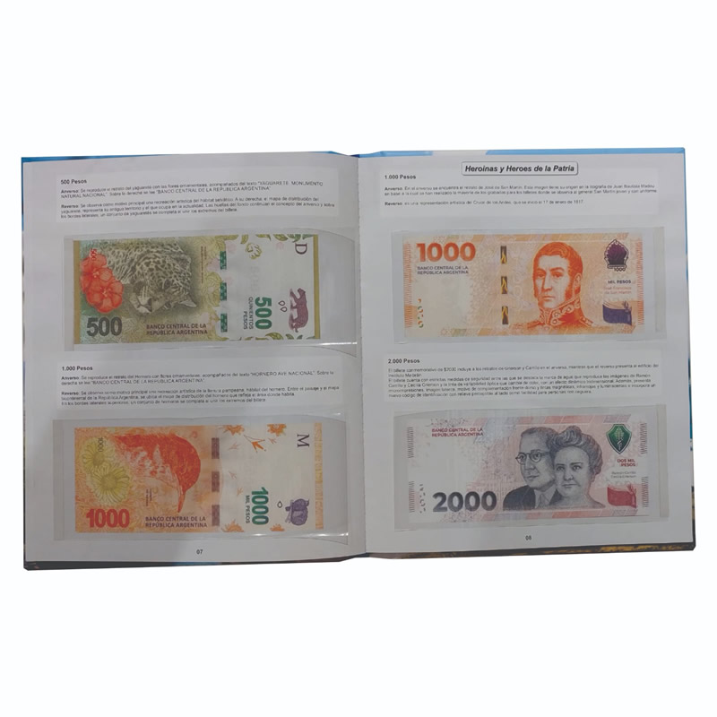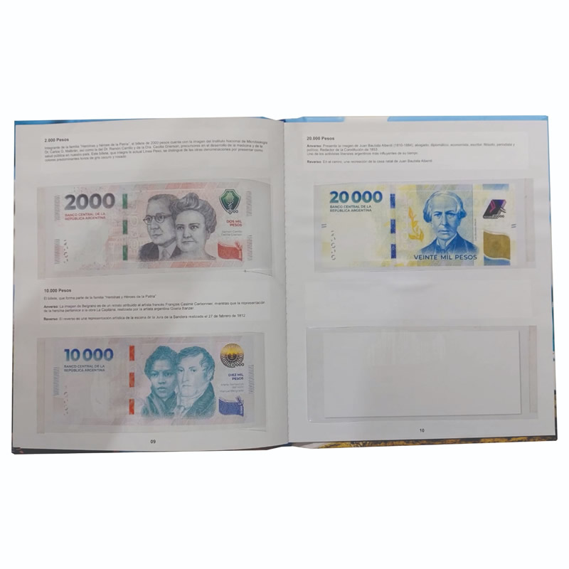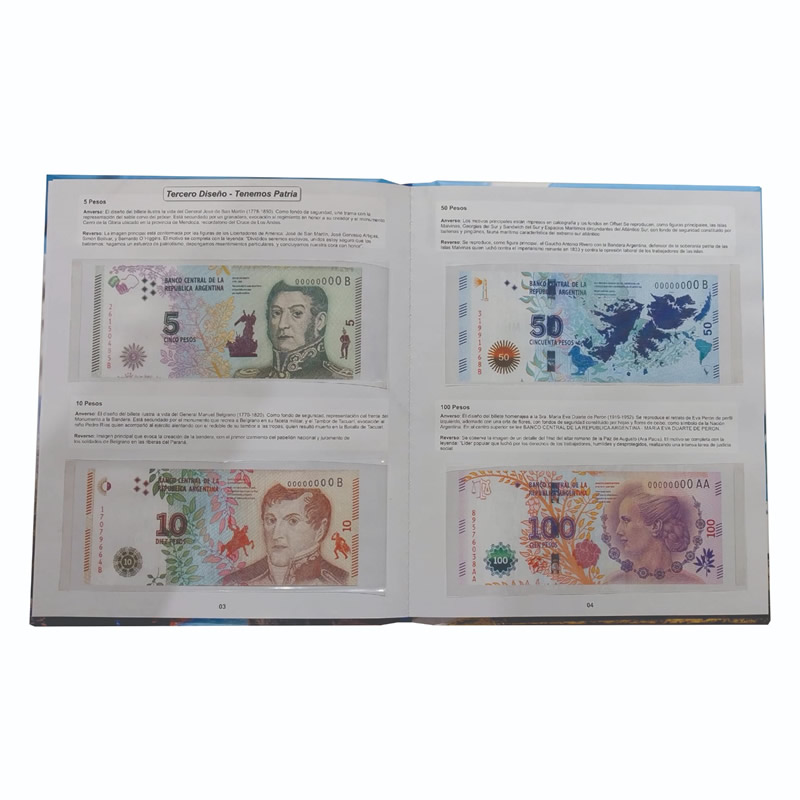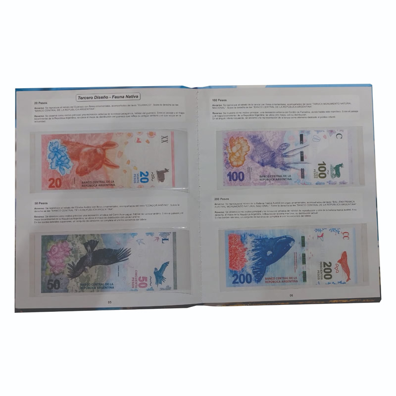 Descrição: Álbum para cédulas Republica Argentina Possui local para 15 cédulas da Argentina dos planos Pesos Pesos Convertíveis Pátria Fauna Heróis da Pátria Medida 21x26cm Peso 400g